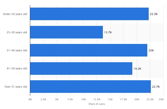 Distribution of WeChat users in China as of March 2022, by age. Source: statista.com
