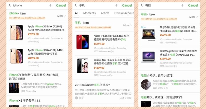 And with the WeChat search engine integrated into Sogou’s website and mobile app (popularly known as “Sogou Weixin search”), Tencent gave non-WeChat users the freedom to access WeChat-related content for the first time.