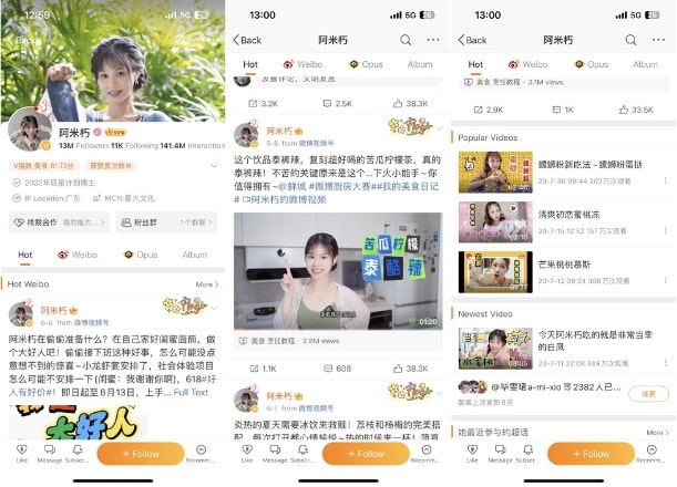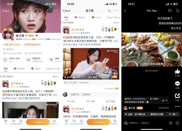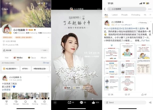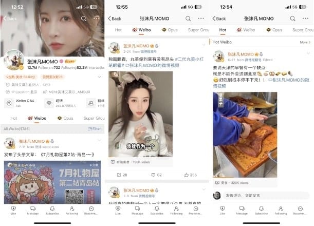 - Weibo: As an app often referred to as China’s equivalent of Twitter, you can expect to find different types of influencers on Weibo, from beauty personalities to food and beverage KOL. This micro-blogging app is where influencers share real-time updates, photos, and videos and engage with their followers.