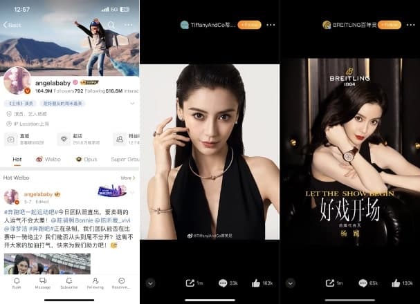 Angelababy is a versatile celebrity who gained fame as an actress, model, and brand ambassador, with a strong social media presence. Dubbed the “Weibo Goddess,” her followers reached over 100 million on Sina Weibo. Given the nature of her profession, brands approach the actress as a reliable beauty KOL in China.
