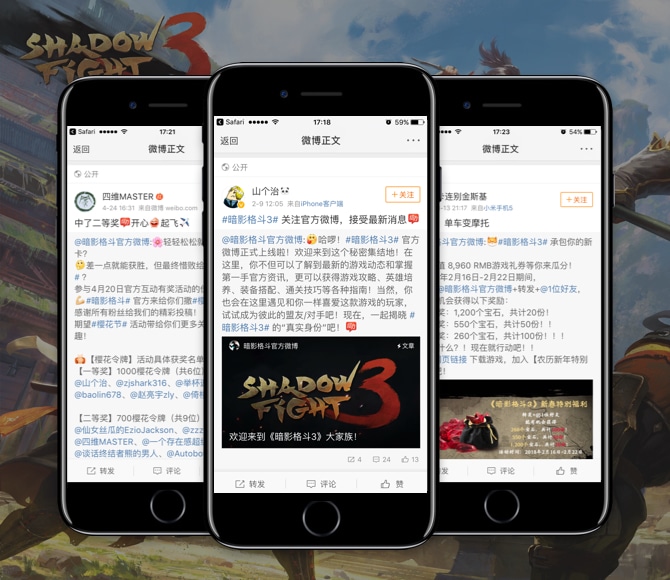 Sekkei Digital Group wasted no time in starting the localization process for Shadow Fight 3 by setting up official accounts on WeChat & Weibo. This helped generate a lot of traffic and increased the fan base by over 10K in the very first month. The ranking of the content increased as the number of user comments grew, this snowball effect worked well to raise the games’ visibility and reputation.