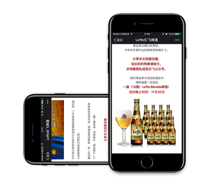 We also gave away one box of beer per month by encouraging fans to share Leffe’s content to their WeChat Moments and send the screenshot back to us. One lucky winner would receive a box of twelve bottles of Leffe beer. This campaign helped to retain followers and keep them interested in the brand throughout the year.