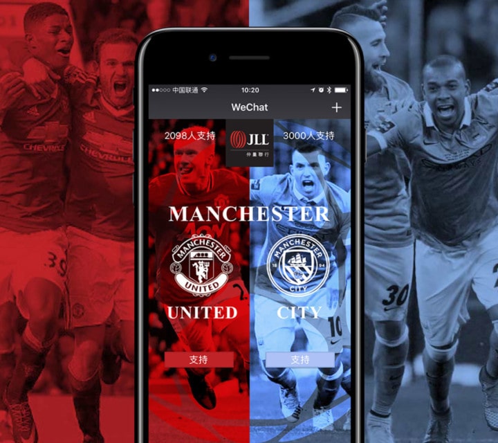 In order to leverage the excitement ahead of the Manchester derby that was due to take place in Beijing in the summer of 2016, we developed a WeChat H5 game in which we encouraged social media followers to pick their favorite team and participate in a quiz on Manchester culture and real estate.