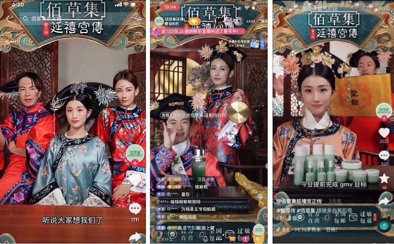 For instance, Herborist designed an ancient palace scene for its live broadcast and had the host and assistant dress up as concubines or kings. It was the first time viewers had the experience of following a drama in a beauty brand’s live-streaming room.