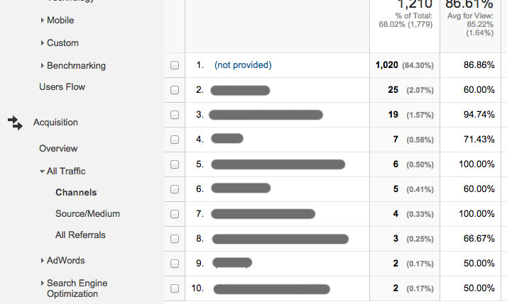 At first, only around 10% of organic search traffic on Google was hidden under “non provided” classification. 3 years later, this number has increased significantly to reach more than 80% of organic search traffic.